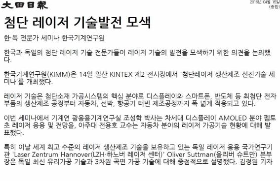 2. ÷´Ü ·¹ÀÌÀú »ý»êÁ¦Á¶ ±â¼ú¼¼¹Ì³ª (SIMTOS2016) °³ÃÖ (YTN, ´ëÀüÀϺ¸, ¾ÆÁÖ°æÁ¦¿Ü 5°÷ 2016³â 4¿ù 14ÀÏÀÚ)