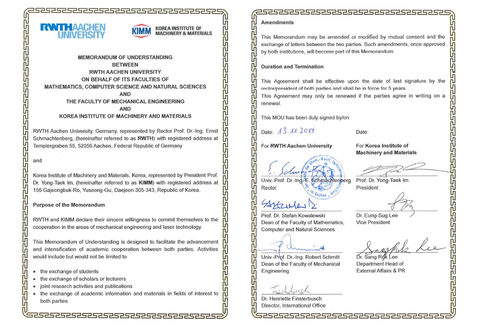 7. µ¶ÀÏ ¾ÆÇî°ø°ú´ëÇб³(RWTH Aachen Univ.) - KIMM °£ MOU ü°á ÁÖµµ (2014³â 11¿ù)