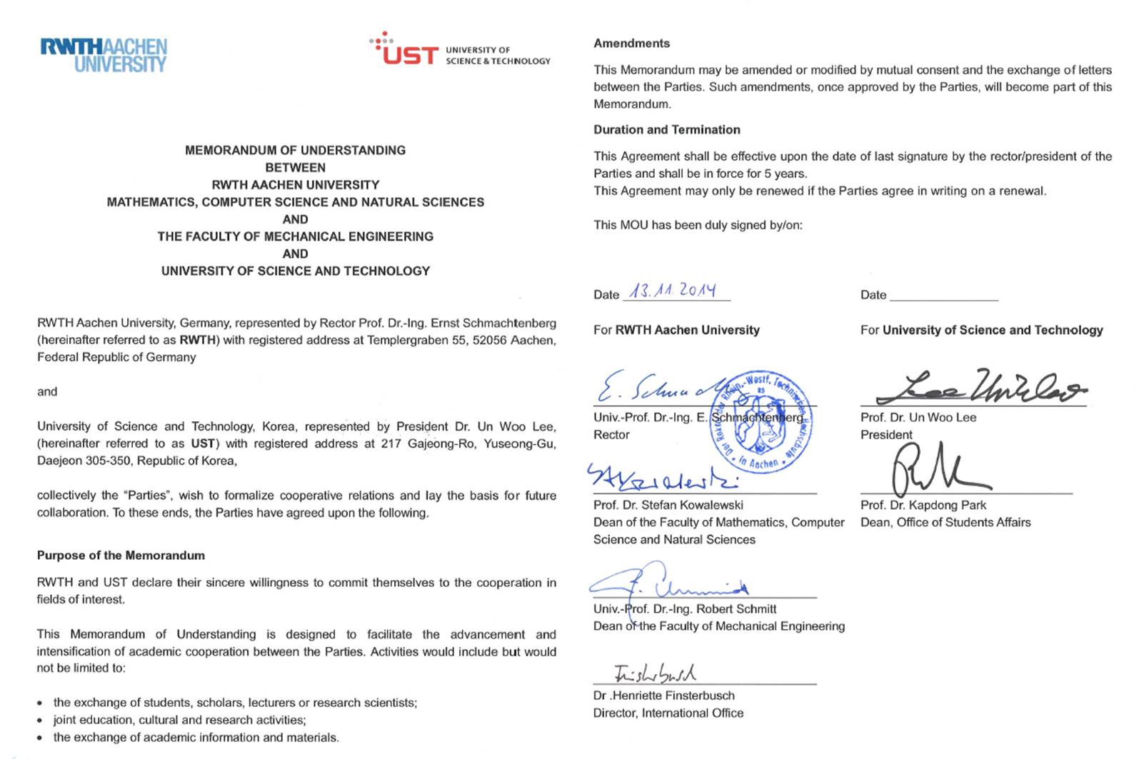 8. µ¶ÀÏ ¾ÆÇî°ø°ú´ëÇб³(RWTH Aachen Univ.) - UST °£ MOU ü°á ÁÖµµ (2014³â 11¿ù)
