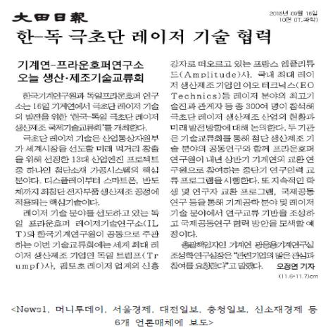 3. Çѱ¹-µ¶ÀÏ ±ØÃÊ´Ü ·¹ÀÌÀú »ý»êÁ¦Á¶ ±¹Á¦±â¼ú±³·ùȸ °³ÃÖ (¼¿ï°æÁ¦, ¸Ó´ÏÅõµ¥ÀÌ, News1 ¿Ü 4°÷ 2015³â 9¿ù 16ÀÏÀÚ)