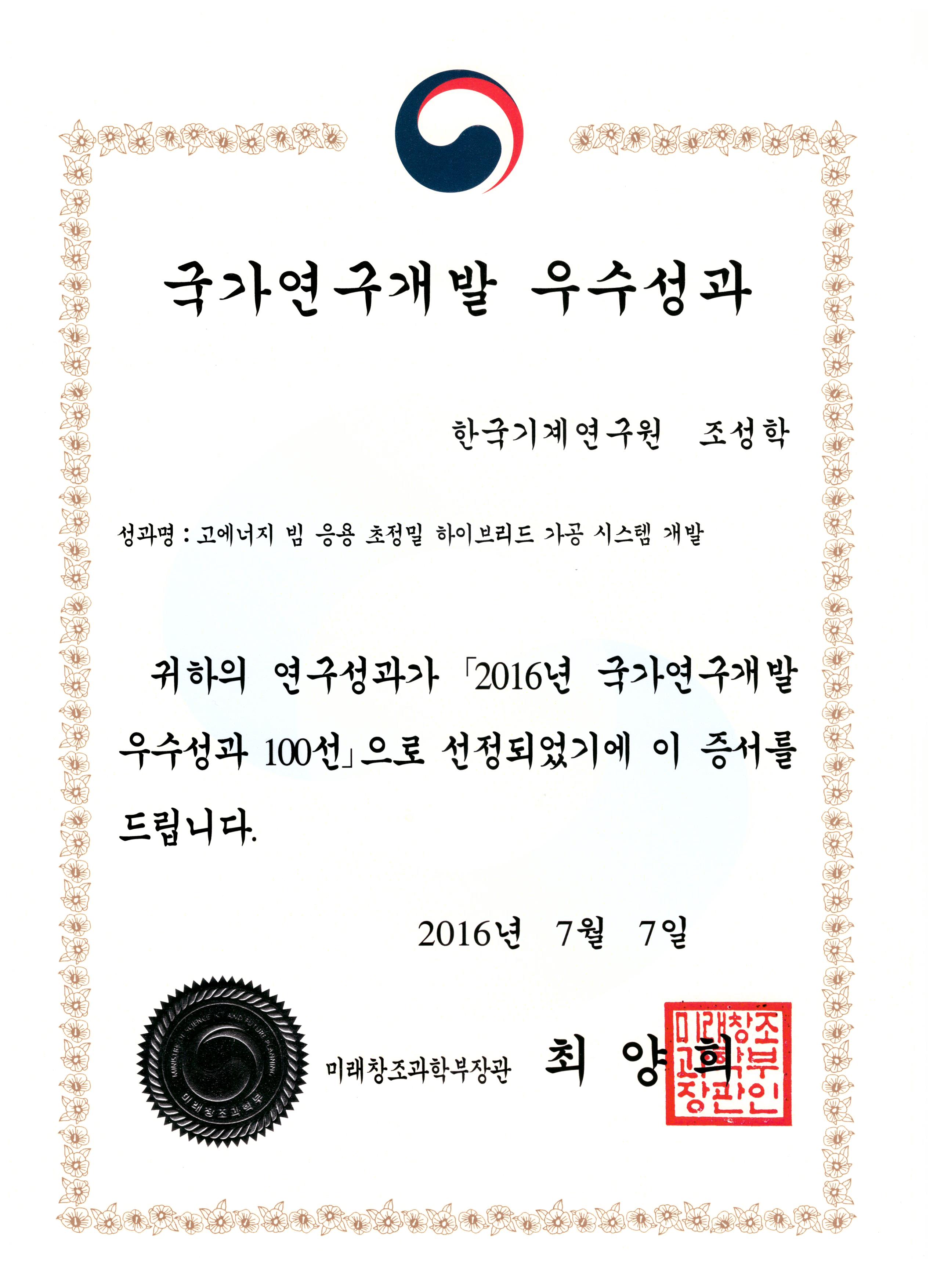 2. 2016 ±¹°¡¿¬±¸°³¹ß ¿ì¼ö¼±°ú 100¼± ¼±Á¤ (¹Ì·¡Ã¢Á¶°úÇкΠ2016³â 7¿ù 7ÀÏ)