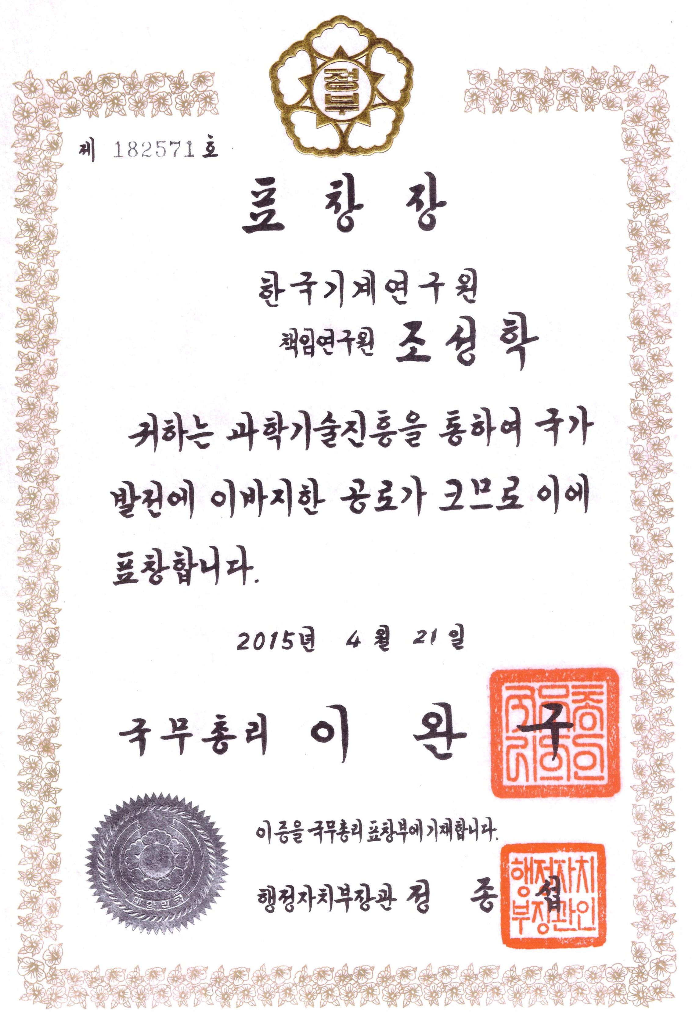 1. ±¹¹«ÃѸ® ǥâÀå ¹× Æ÷»ó (´ëÇѹα¹ Á¤ºÎÀ¯°øÀÚ Æ÷»ó, °úÇÐÀÇ ³¯, 2015³â 4¿ù 21ÀÏ)