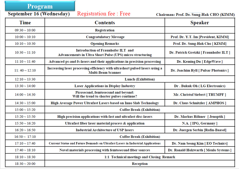 2. Mr. Christof Siebert, ¡°Picosecond, femtosecond and beyond: Will the trend to shorter pulses continue?¡± TRUMPF, Germany £ü¹ßÇ¥ÀÚ·á
